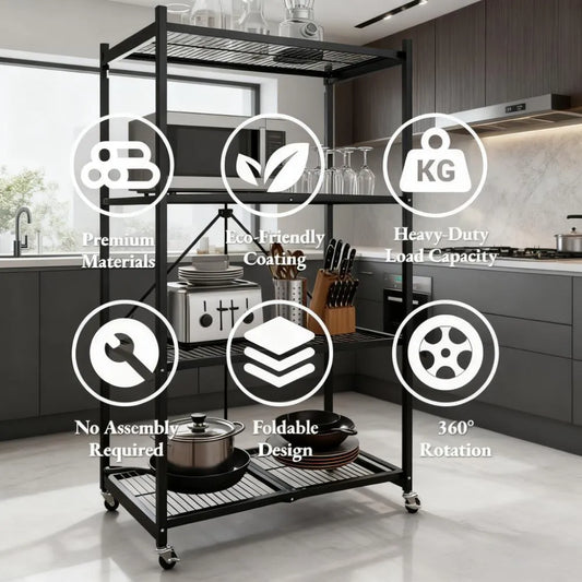 š„BUY 2 GET 2 FREE + BONUS GIFTļ¼4-Tier Foldable Storage Rack with Wheels