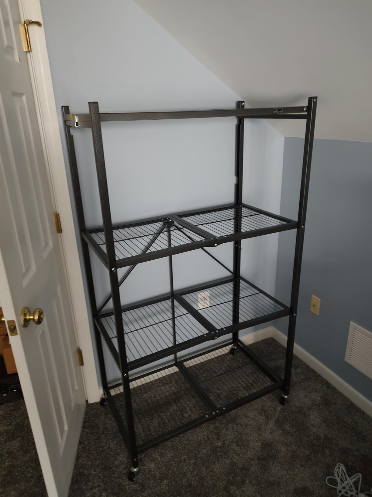 This shelf is incredibly sturdy and looks great. Each tier holds a surprising amount of weight, and it still feels lightweight to move around. The folding design is super convenient ā takes just seconds to set up or store away. Definitely one of the best storage pieces Iāve bought online!