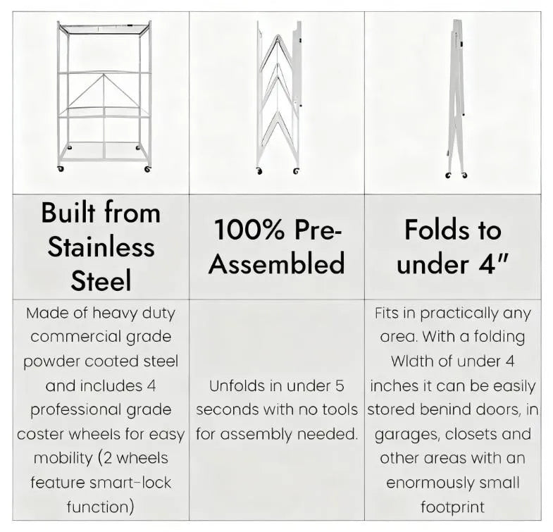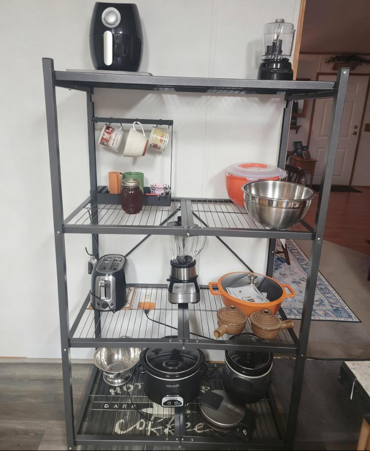 I absolutely love this foldable shelf! My kitchen has limited space, and this rack has been a lifesaver. Itās super sturdy ā Iāve got my mixer, air fryer, and jars all on it, and it doesnāt wobble at all. The best part? It folds up in seconds when I need extra room. Way better quality than I expected for the price!